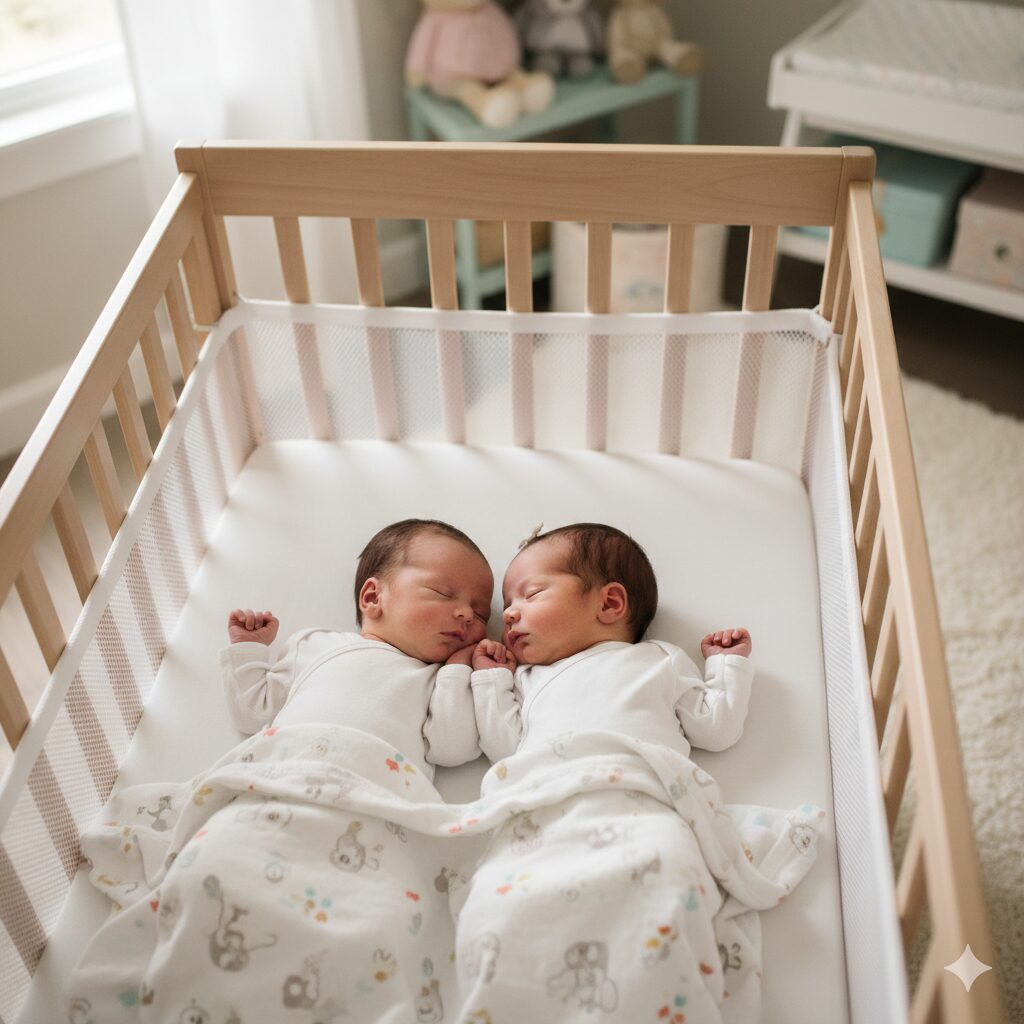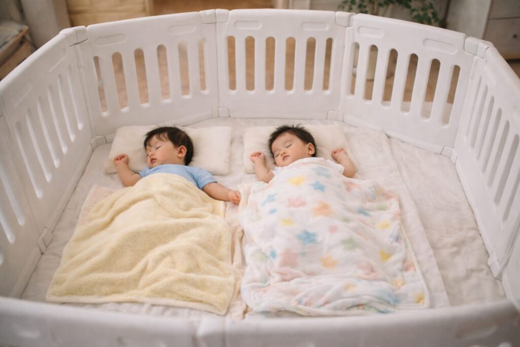 「ベビーベッドは何台必要?」「同じ部屋で寝られる?」「いつまで一緒に寝る?」など、調べても情報が断片的で、双子前提の実例は多くありません。